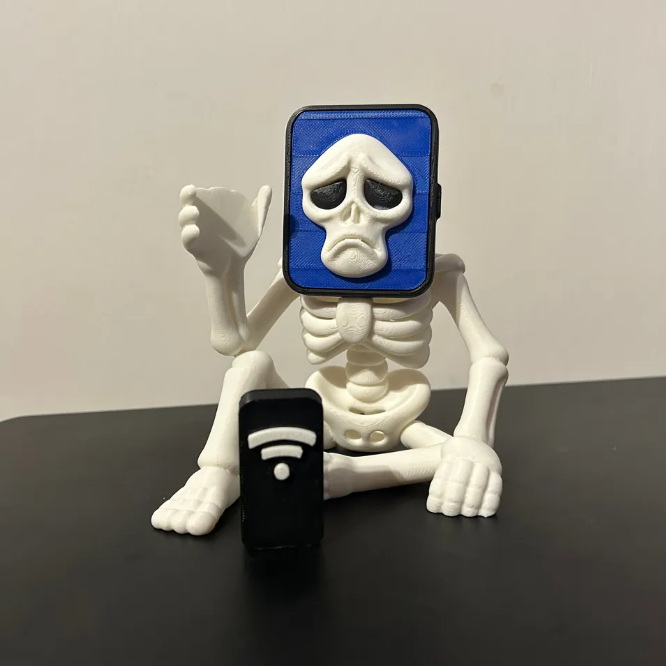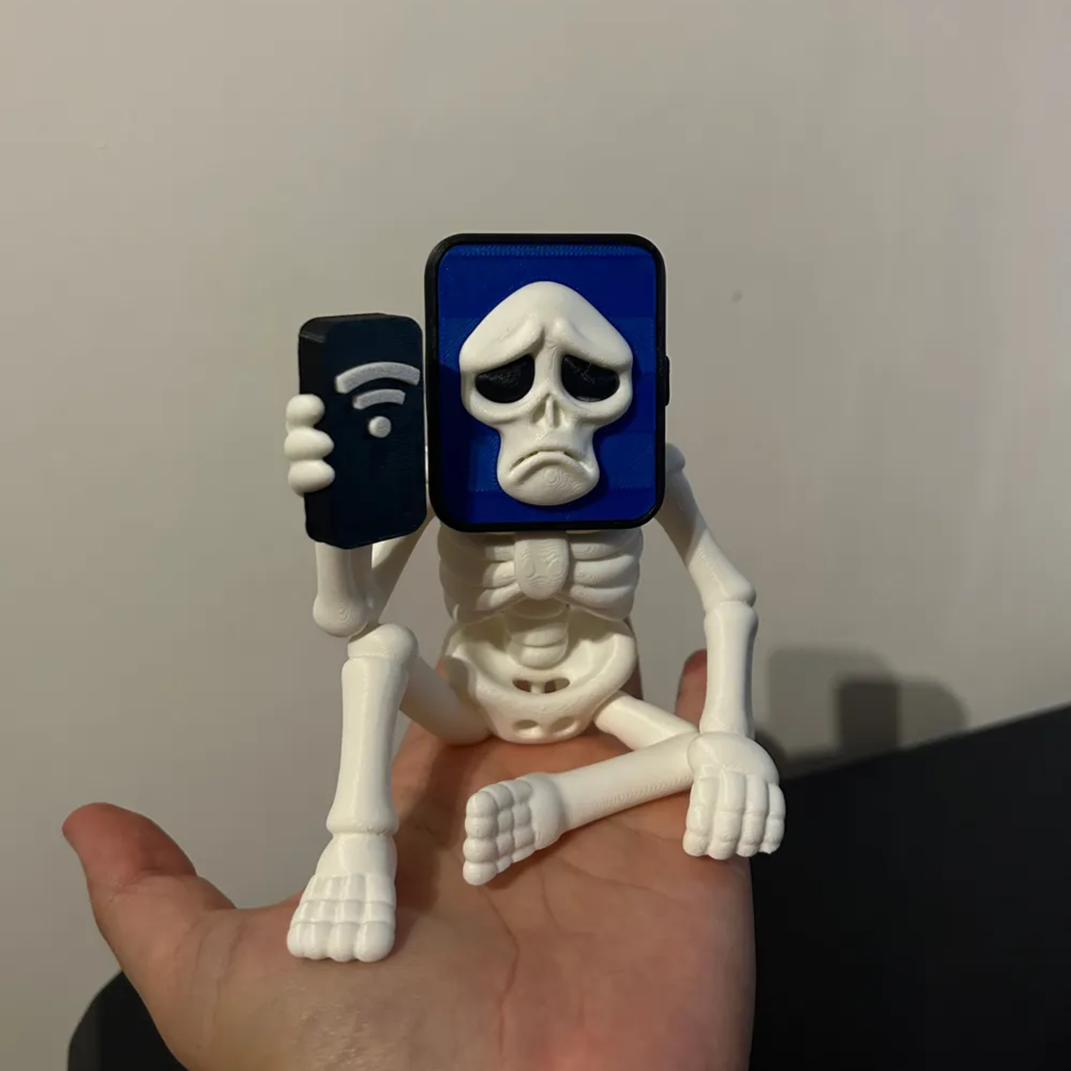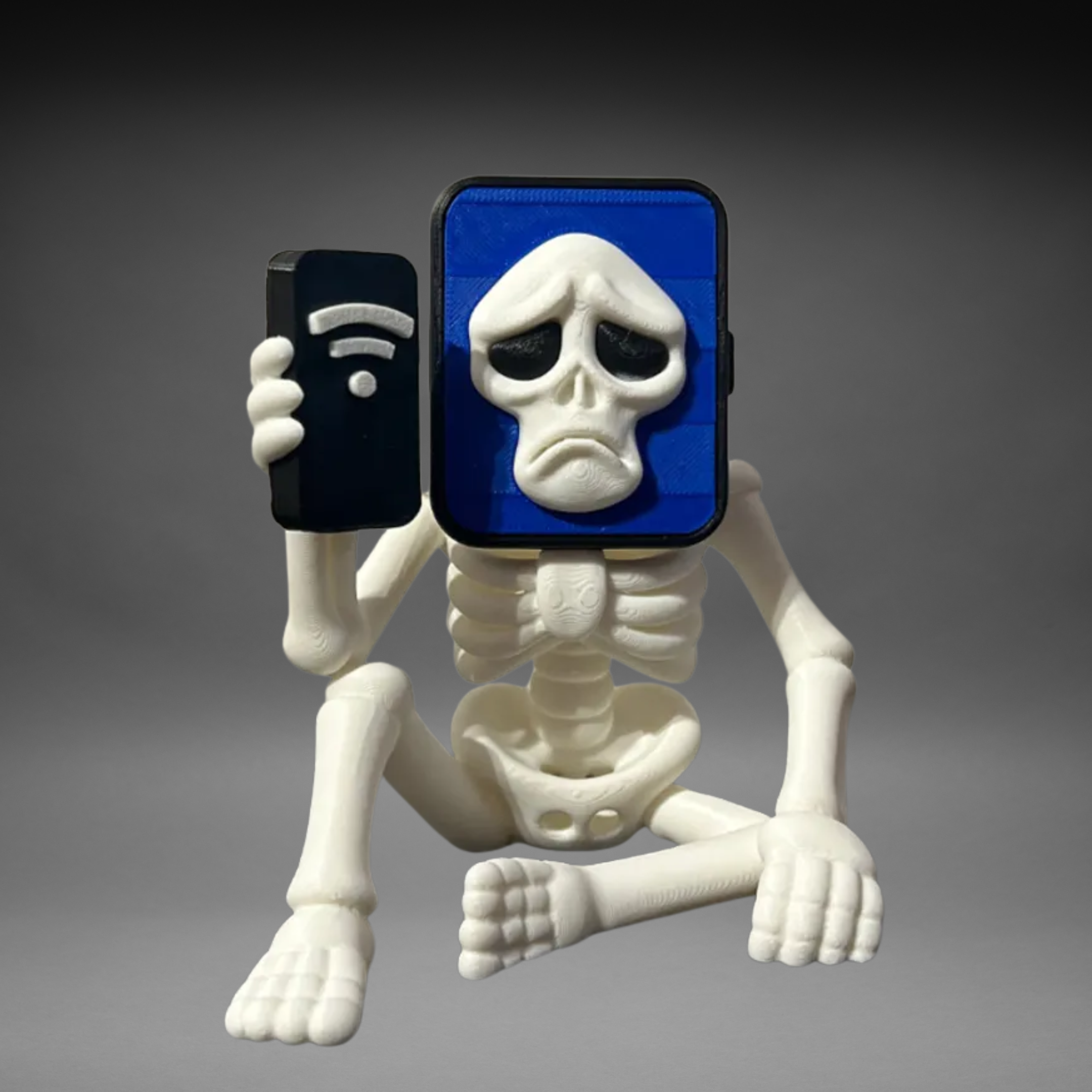 Pot-Hotspot llega con su estilo esquelético y su humor tecnológico: un celular en la cabeza y otro en la mano que grita “¡No hay WiFi!”. Este brainrot combina diversión y sarcasmo, perfecto para quienes disfrutan de lo original, lo gracioso y lo inesperado en cada figura.