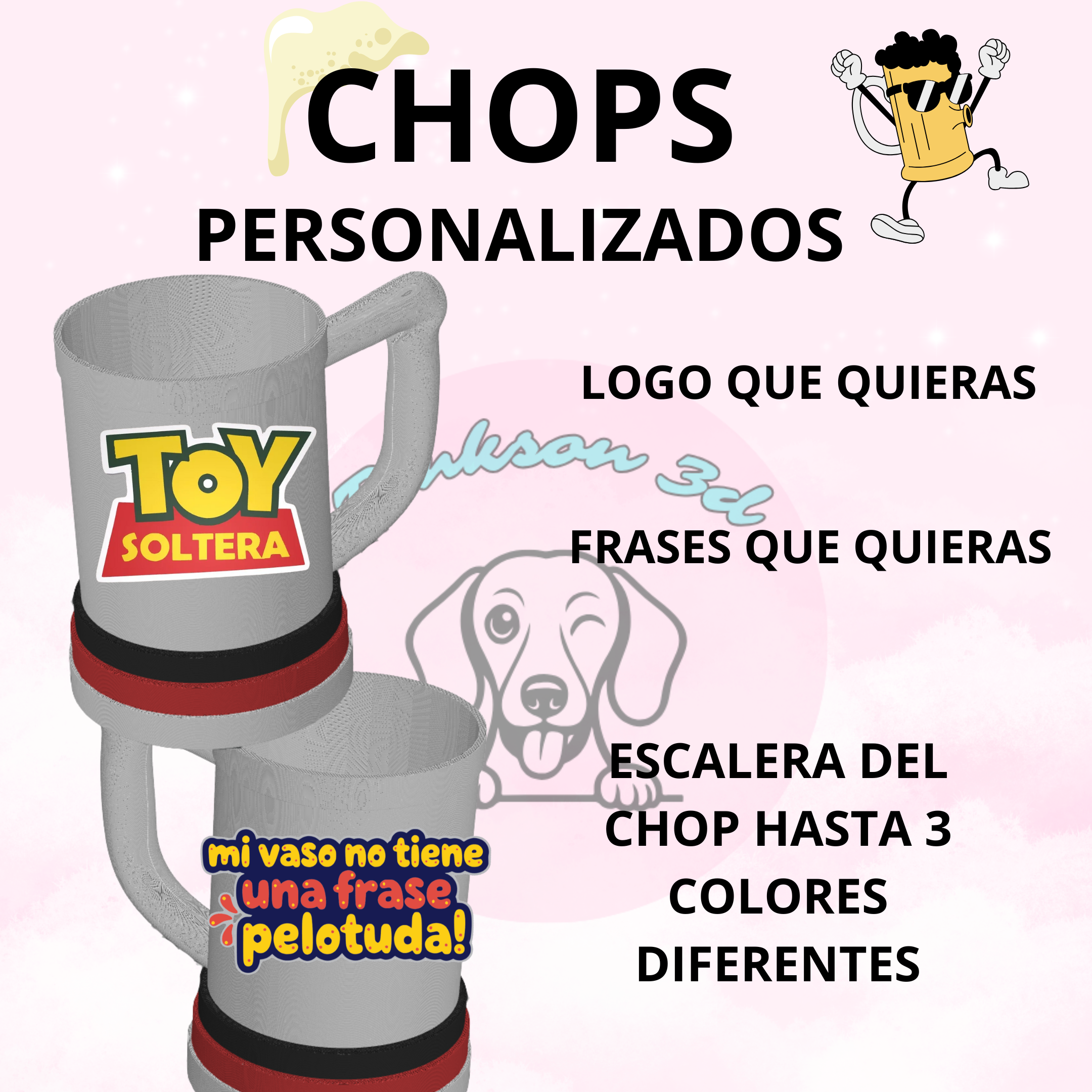 Las escaleras del chop (la parte del soporte) pueden realizarse en hasta 3 colores distintos.